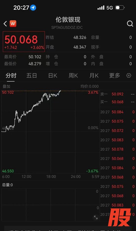 经历了短期调整之后,北京时间11月10日晚间,伦敦银现再度走高,截至记者发稿时,伦敦银现(现货白银)涨逾3%,重新站上50美元/盎司,受白银上涨提振,伦敦金现(现货黄金)涨超2%,报4094美元/盎司。