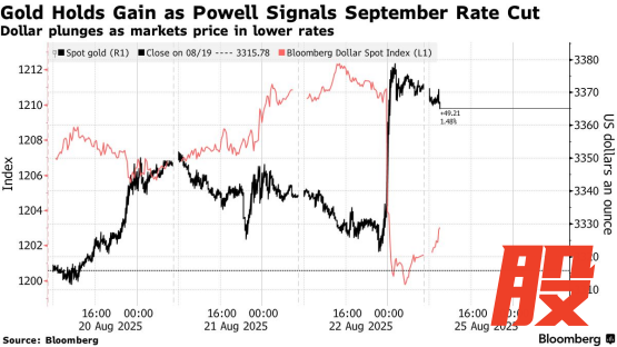 ATFX汇评:美联储主席鲍威尔上周五在杰克逊霍尔经济研讨会上发表演讲,指出劳动力市场风险上升——尽管通胀担忧依然存在。对政策敏感的两年期美国国债收益率暴跌,而衡量美元强弱的指标在鲍威尔讲话后下跌,美股市场和黄金一度共同狂欢。当天道琼斯指数创下了今年以来的首个记录新高,黄金录得三周来的最大涨幅,现货白银单日大涨1.72%。